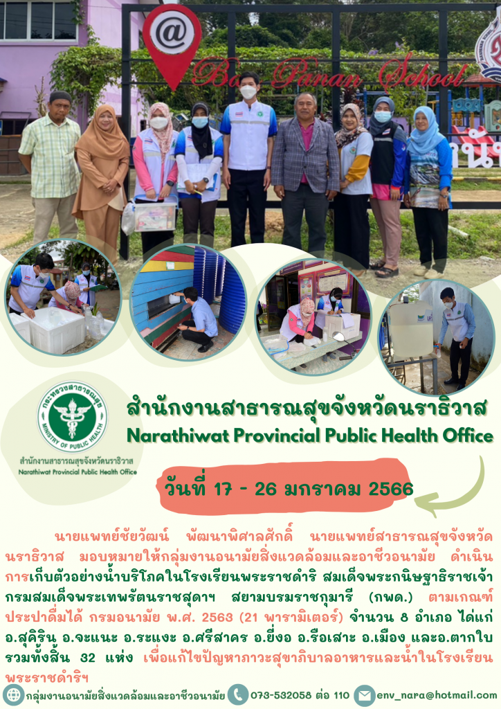 เก็บตัวอย่างน้ำบริโภคในโรงเรียนพระราชดำริ สมเด็จพระกนิษฐาธิราชเจ้า กรมสมเด็จพระเทพรัตนราชสุดาฯ สยามบรมราชกุมารี (กพด.)กลุ่มงานอนามัยสิ่งแวดล้อม / 20/01/2023 อ่านแล้ว : 2,988 FacebookFacebookXXLINELine