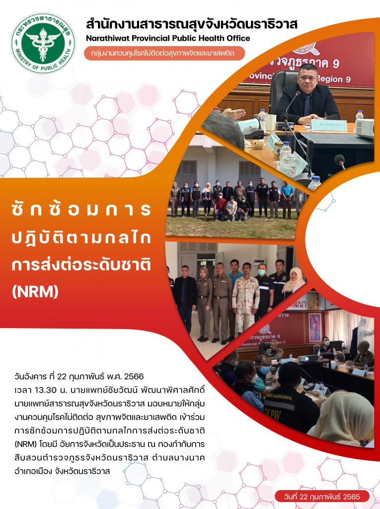 ซักซ้อมการปฏิบัติตามกลไกการส่งต่อระดับชาติ (NRM)กลุ่มงานควบคุมโรคไม่ติดต่อ สุขภาพจิตและยาเสพติด / 24/02/2023 อ่านแล้ว : 2,771 FacebookFacebookXXLINELine