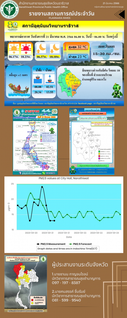 รายงานสถานการณ์ประจำวัน 21 มีนาคม 2566กลุ่มงานพัฒนายุทธศาสตร์ฯ / 21/03/2023 รายงานสถานการณ์ประจำวัน 21 มีนาคม 2566 อ่านแล้ว : 2,649 FacebookFacebookXXLINELine