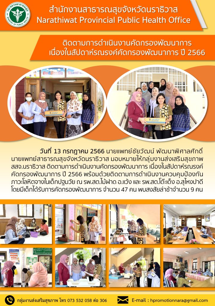 ติดตามการดำเนินงานคัดกรองพัฒนาการ เนื่องในสัปดาห์รณรงค์คัดกรองพัฒนาการ ปี 2566
