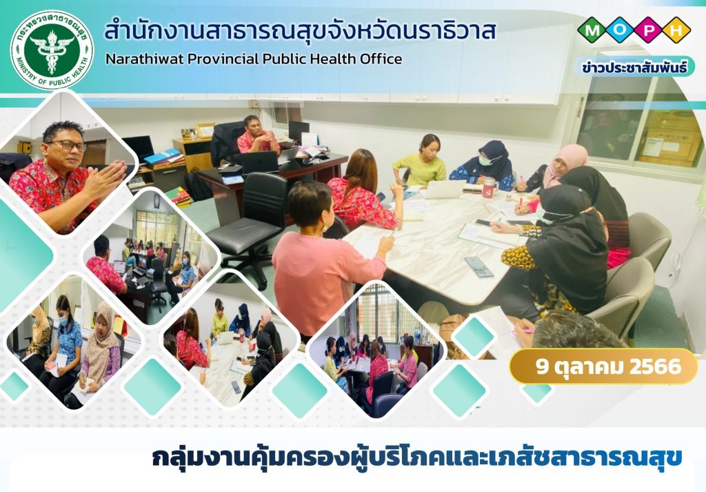 วันที่ 9 พฤศจิกายน 2566 กลุ่มงานคุ้มครองผู้บริโภคและเภสัชสาธารณสุข ได้จัดประชุมกลุ่มงานฯ ประจำเดือนพฤศจิกายน โดยมี ภก.อดุล บินยูโซะ รองนายแพทย์สาธารณสุขจังหวัดนราธิวาส เป็นประธานในการประชุม ณ ห้องรองนายแพทย์สาธารณสุขจังหวัดนราธิวาส สำนักงานสาธารณสุขจังหวัดนราธิวาส เพื่อชี้แจงนโยบายบัตรประชาชนใบเดียวรักษาได้ทุกที่ ข้อสั่งการ รวมถึงการวางแผนกิจกรรมโครงการ ประจำปีงบประมาณ 2567