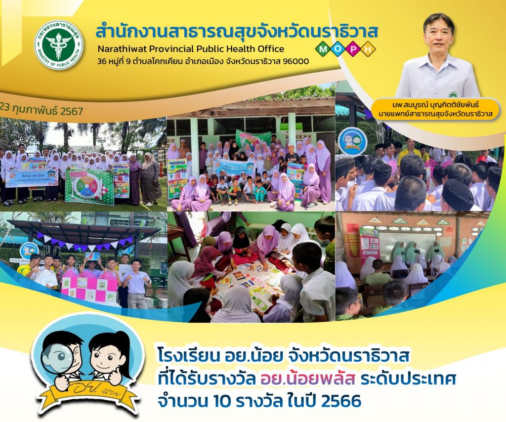 โรงเรียน อย.น้อย จังหวัดนราธิวาส ที่ได้รับรางวัล อย.น้อยพลัส ระดับประเทศจำนวน 10 รางวัล ในปี 2566
